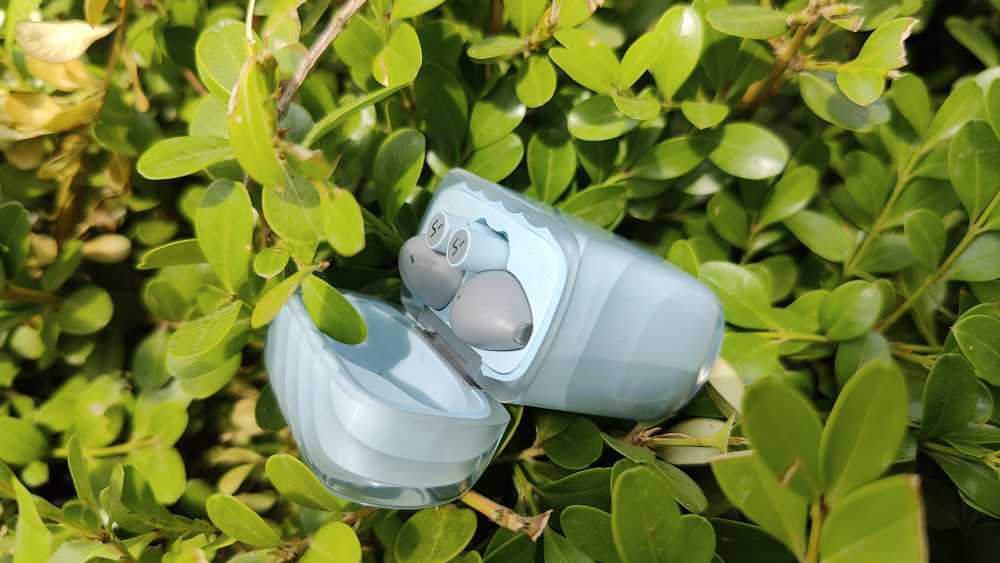 耳机的主体配色是灰色和蓝色,同样的青春洋溢。耳机采用半入耳式人体工学设计,整体机身重量仅为4g,耳机线条流畅,能与耳朵皮肤表面完美贴合,近乎无感的佩戴体验,真正做到给耳机减负,长时间佩戴也不会有压耳、耳痛的现象。