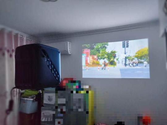 虽然没有幕布,但是直接投在白墙上的效果还是不错的。投影仪在肤色保护、HDR10解码、画面降噪方面都有不俗的表现。而且投影仪的光学无损偏轴设计,可以优化光折射路径,不怕被异物遮挡,位置摆放会更随意自由。