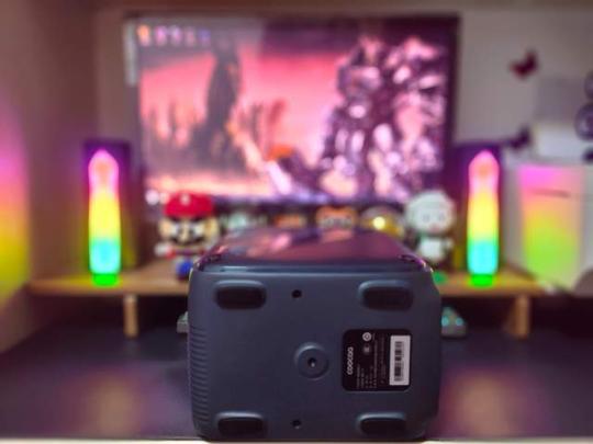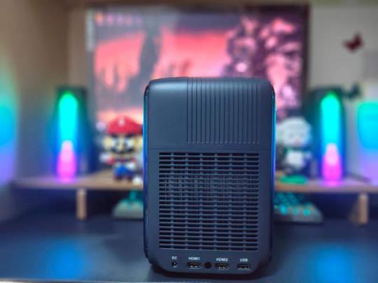 在投影仪的两个侧面分别设有对称设计的500ml大音腔,这是一款搭载钕铁稀金属的全频扬声器,灵敏度是普通磁铁磁力的三倍,经过专业调音师定制后,音质方面高音宏亮,低音深沉,声音失真很小。