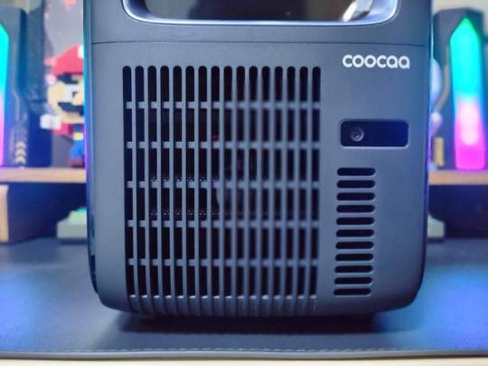 在镜头的下方为投影仪的散热口,酷开P9投影仪配备三倍液冷铜管和高导热系数散热片,游戏级散热机制可以有效解决长时间观影时投影仪的发热问题,延长投影仪的使用寿命。