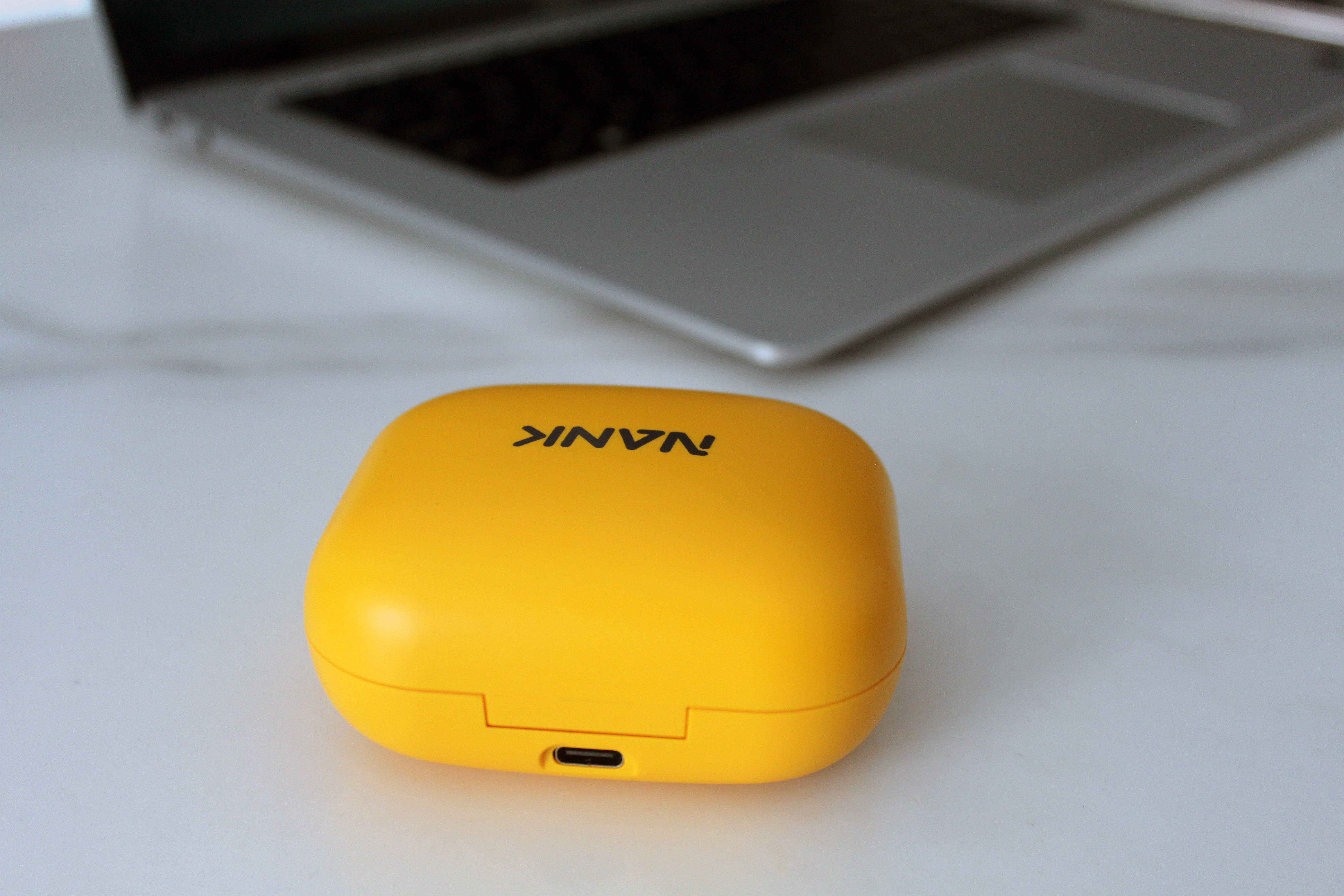 南卡真无线骨传导耳机OE一共搭配了机械黄和星光白两个颜色,我入手的是机械黄的配色。充电舱采用了方形的造型,四角采用了倒角的设计,让充电舱整体看起来比较圆润,手感摸起来也比较舒服。在充电舱舱盖的印着南卡的标识,增加了产品的辨识度。