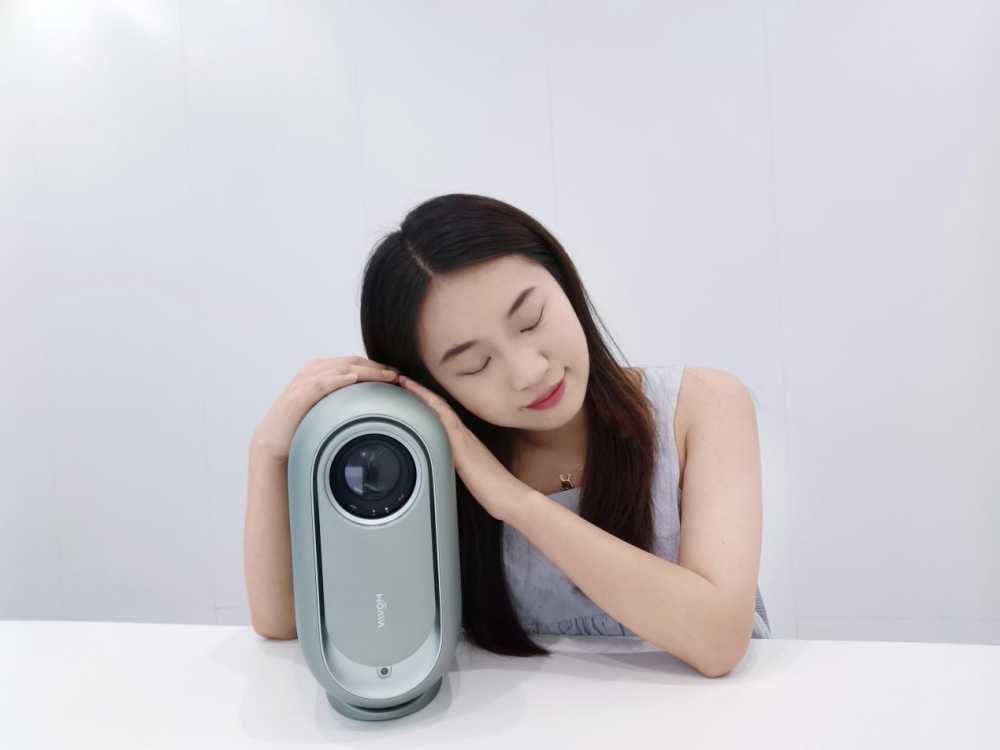 底座采用悬浮式设计,观感上更有设计层次感。整个设计相较于市面上其他常见的投影仪外观更具独特性和设计感。还可以搭配一个小支架调整高度。