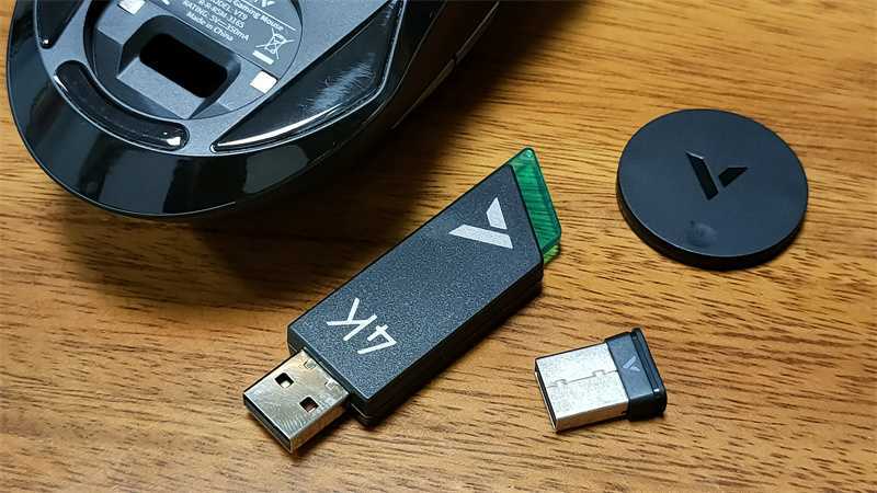 待鼠标完成固件升级之后,用户则需要断开VT9原机自带的2.4G接收器,然后将将具备“4K 回报率”的V2M接收器插入电脑的USB接口,等到电脑自动打上驱动并正确识别接收器后方可进行下一步操作。