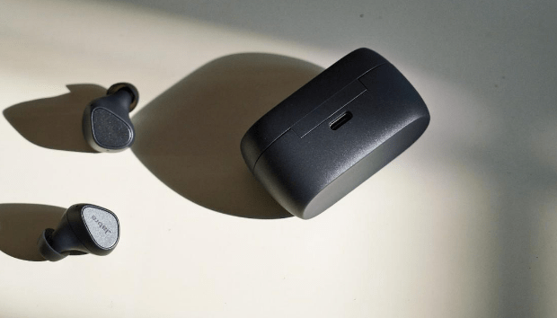 捷波朗 Elite3提供三种不同尺寸的硅胶耳塞,你可以根据自己的尺寸进行更换,耳塞也很轻,耳机采用无柄设计,表面logo位置是一个控制按钮,这款耳机并没有采用当下主流的触摸控制,不过按钮也不错,能够很好的避免误触,且采用了轻阻尼按键,点击时会有恰到好处的反馈感,又不会有太强的挤压感,耳机整体大小适宜,机身轻盈,整体呈球状,比较贴合人耳,佩戴起来几乎没有异物感,而且相当牢固,即使是运动状态也不会轻易掉落,长时间佩戴也没有明显的不适感,它采用了超细腻的aptX数字音频压缩技术,搭载6mm 大小的动圈单元,使得音质体验更上一层楼,无论是追剧还是听歌都是相当的奈斯,搭配 Sound+ 应用程序,让用户根据自己的喜好选择声音,拥有蓝牙5.2的技术,还 具备IP55防尘防水的等级,7+28组合的长续航时间。