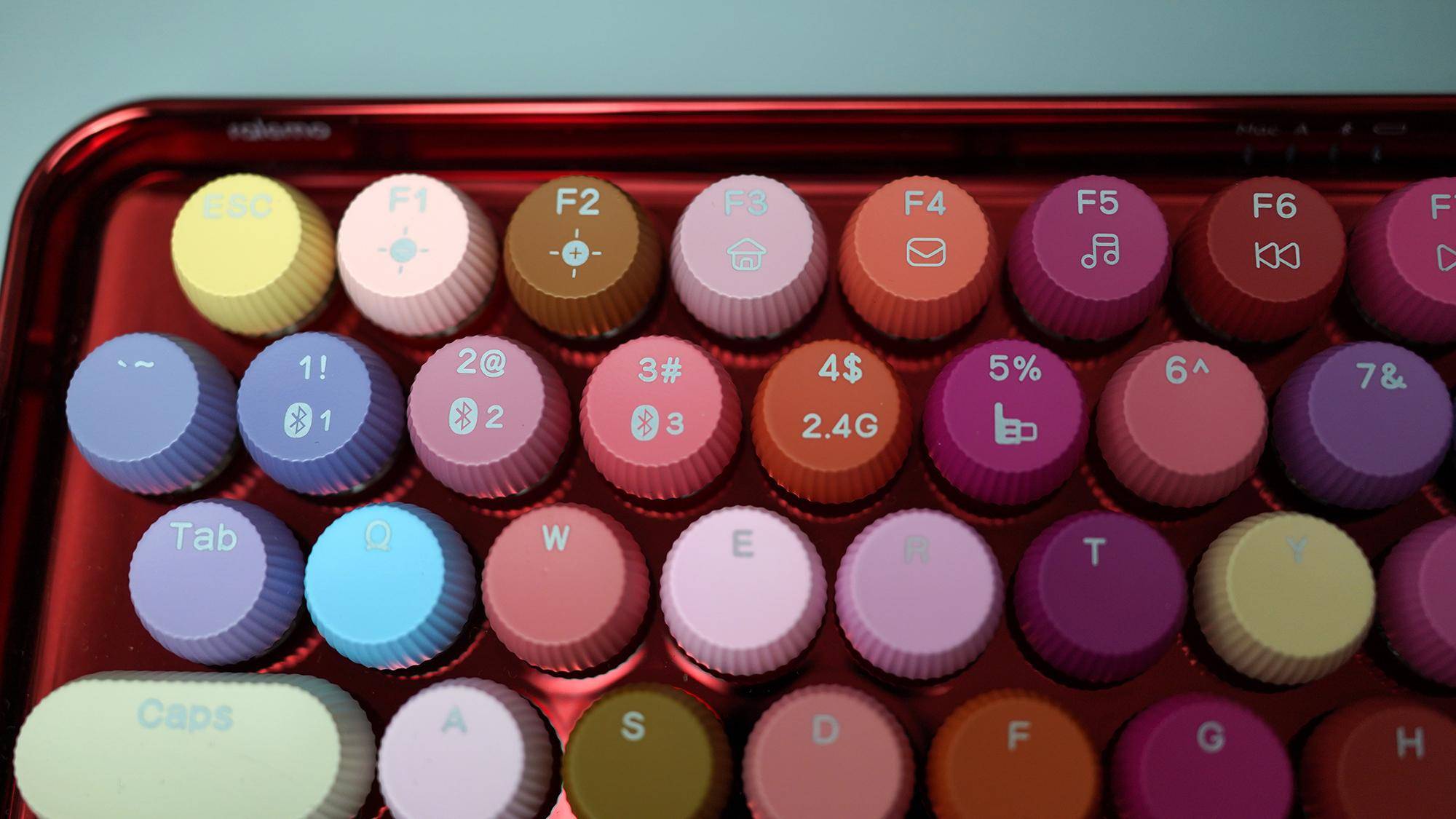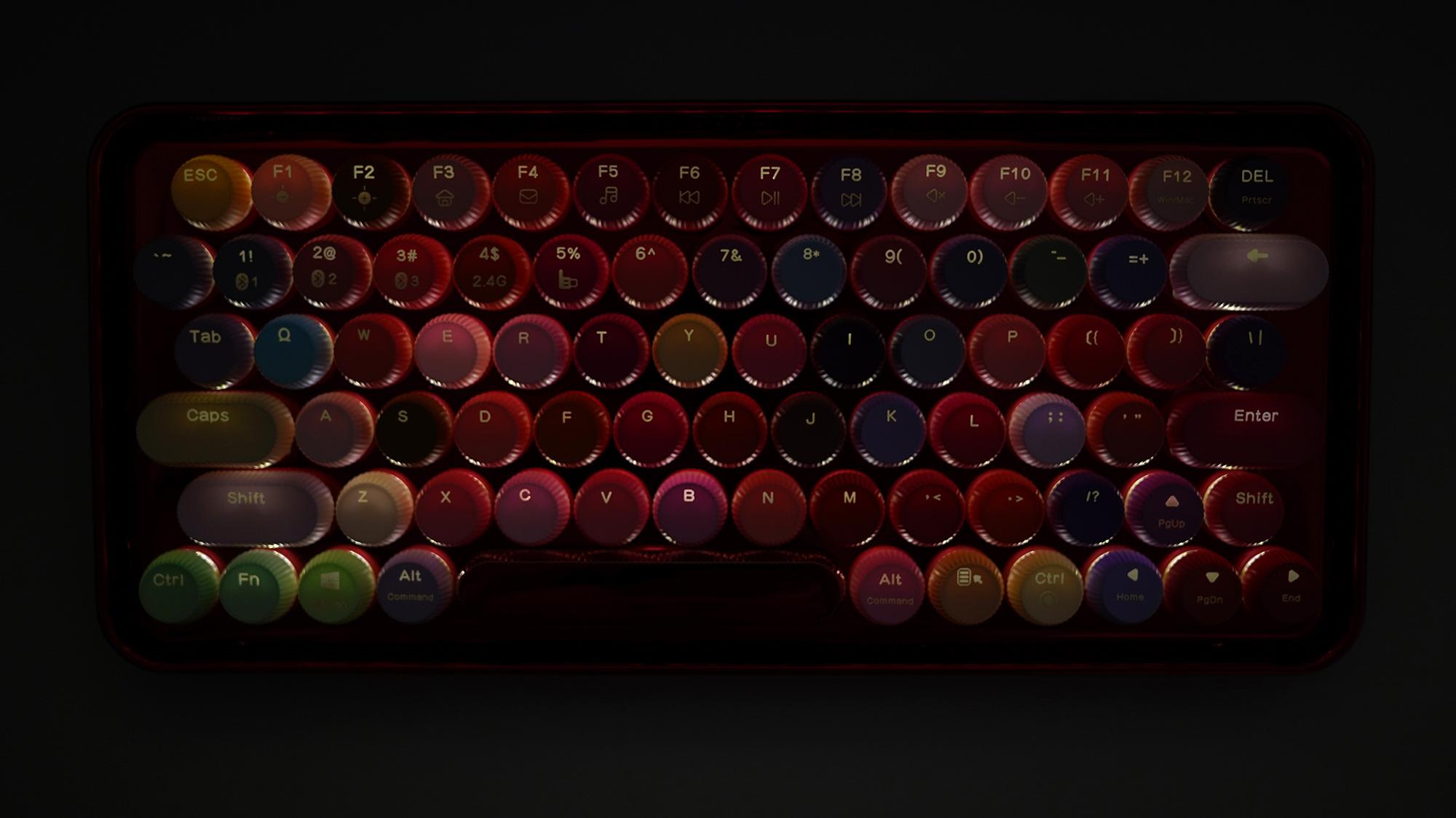 79枚按键,都是属于“圆润”风格了,没有一点棱角,看起来比较温润,除了一些功能键是圆角矩形,其他的都是正圆形。
