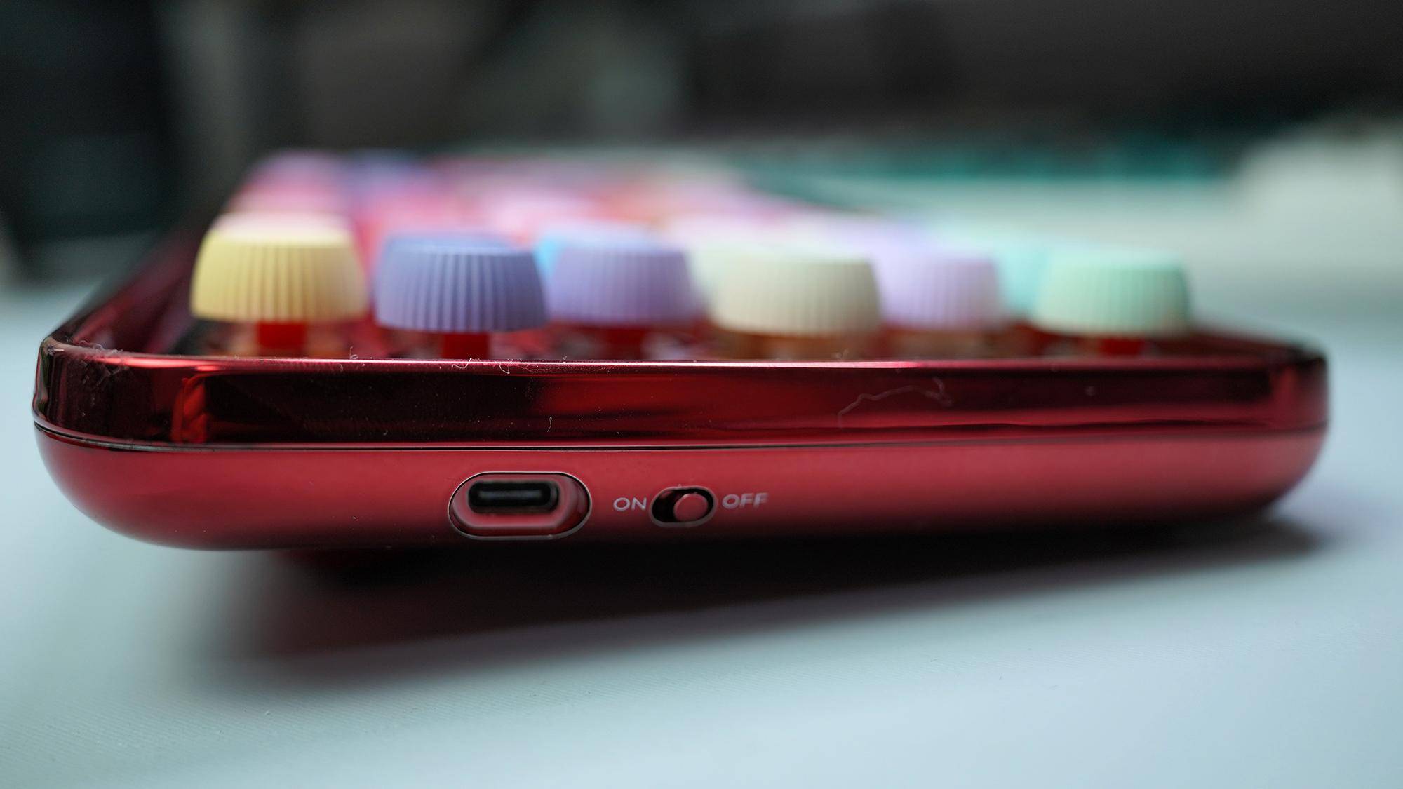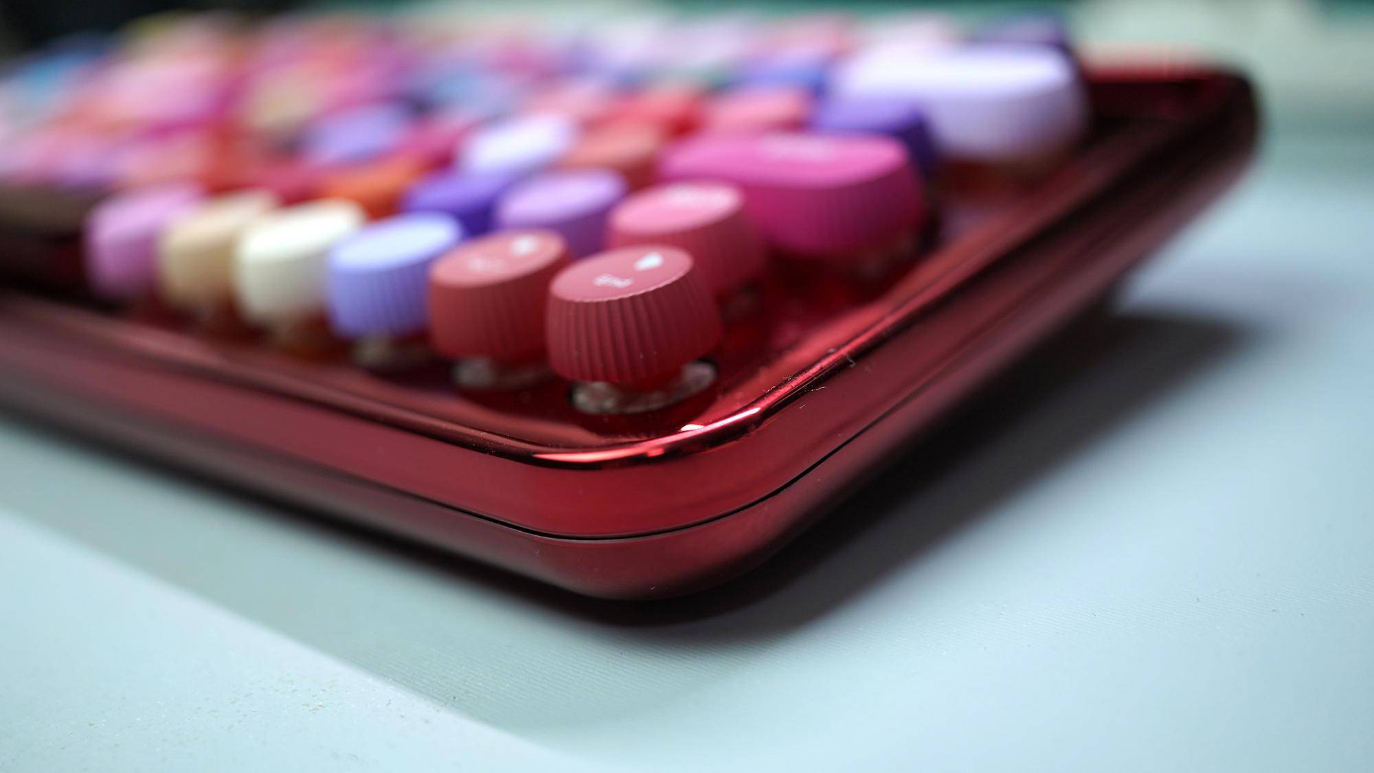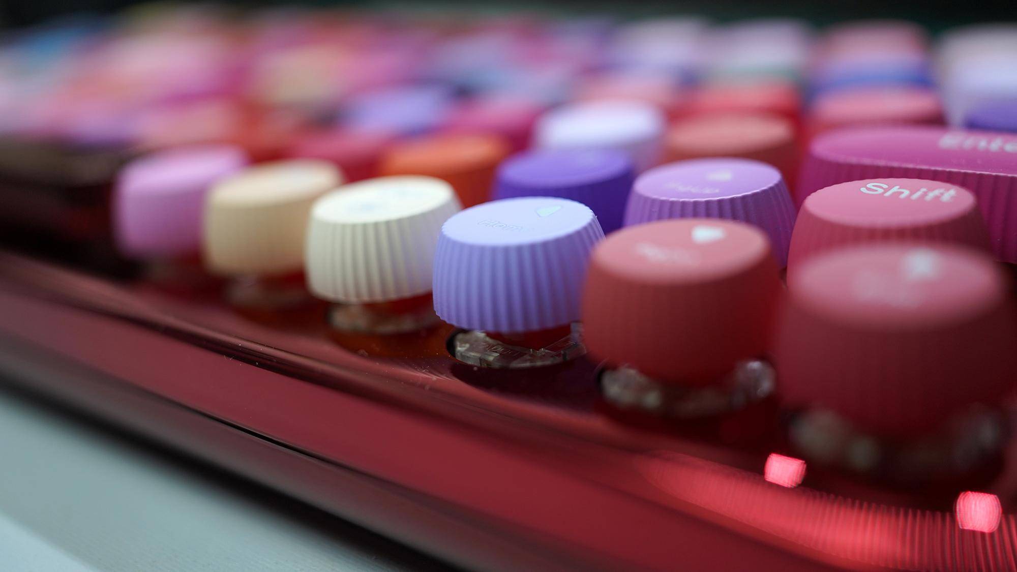 在圆润的基础上,每一枚按键的侧面都做了栅格式的设计,让键盘的整体视觉效果不那么单调。