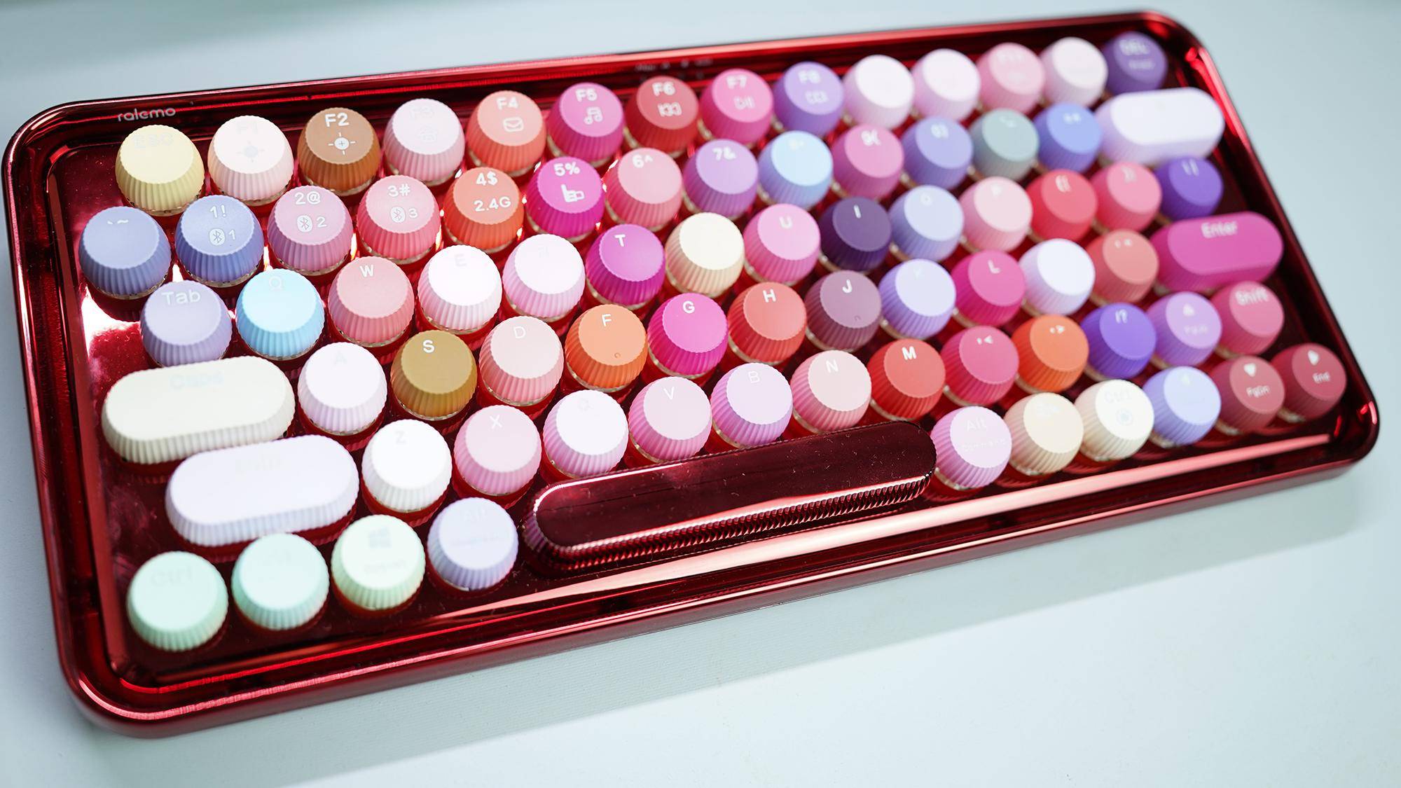 雷柏ralemo Pre 5系列机械键盘中,就推出了彩妆系列的机械键盘。既然定位于彩妆,那必然就是颜值第一咯。