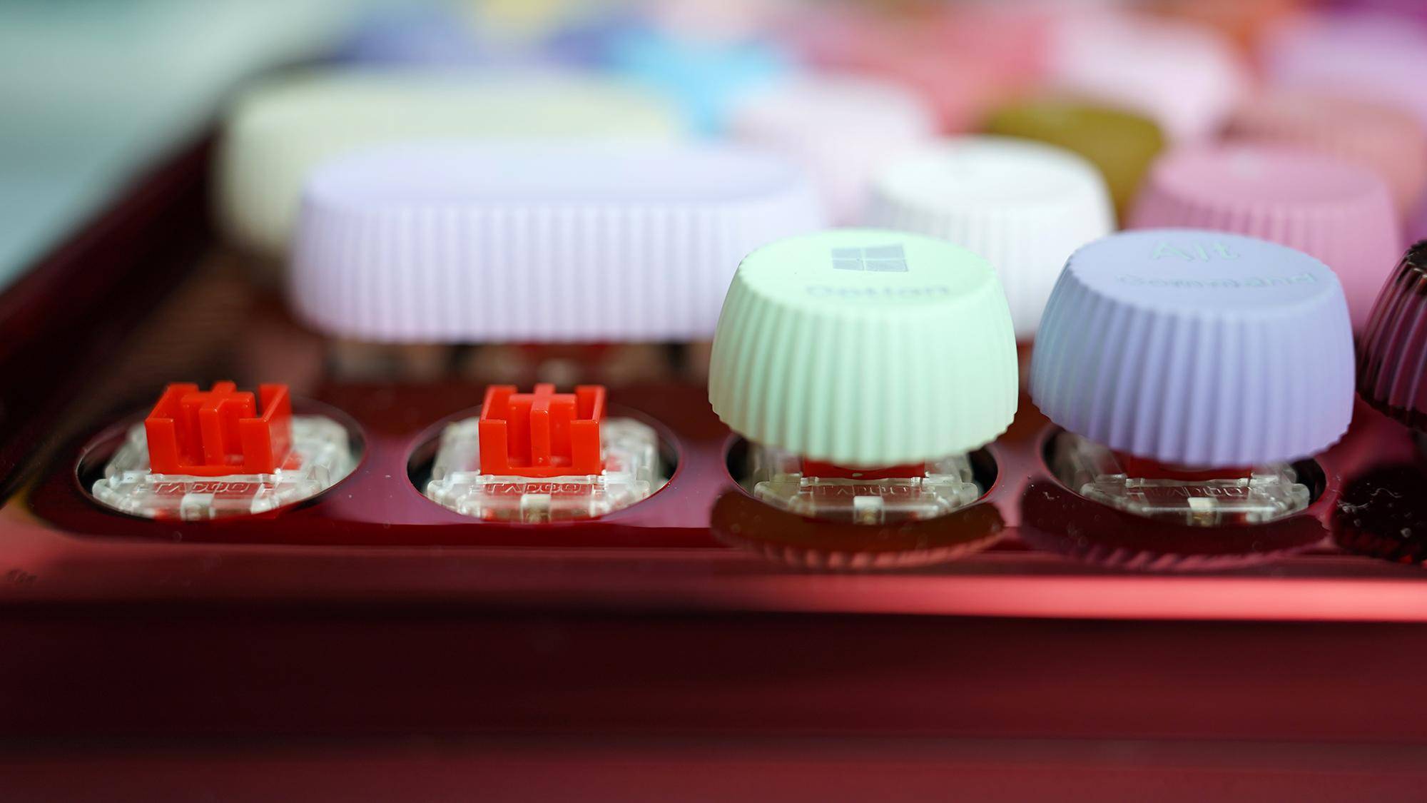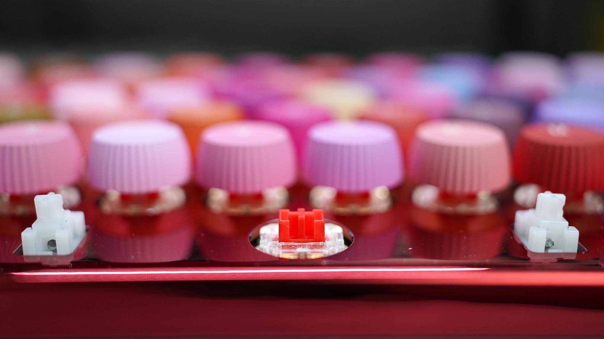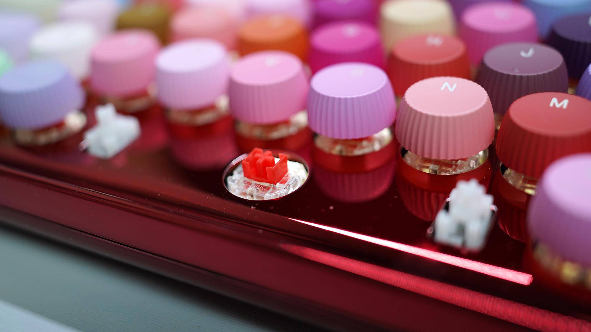 提到彩妆,你能想到什么?色彩丰富是必然的。雷柏ralemo Pre 5彩妆版提供了两种色系,一个是红色,一个是紫色。本次分享的是红色红轴的版本,官方对颜色的名称为胭红彩韵