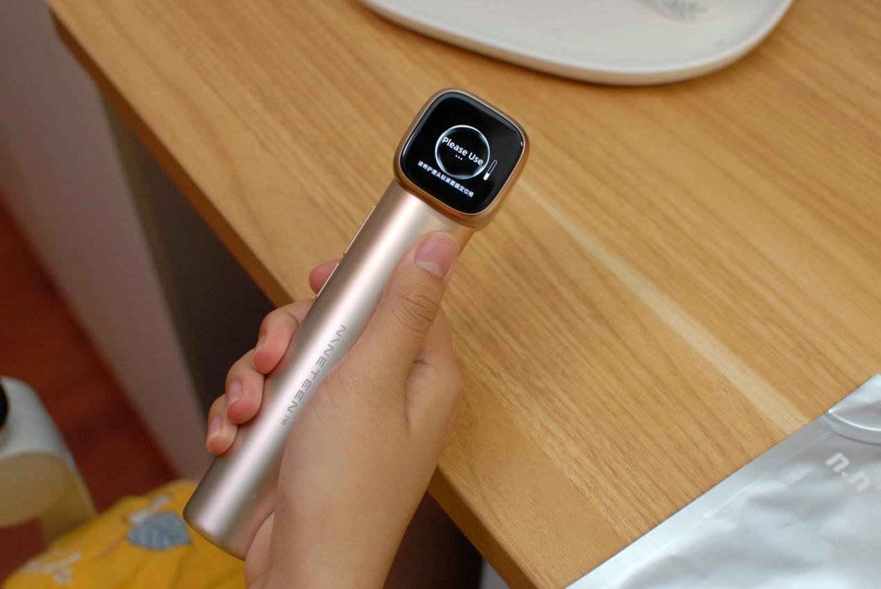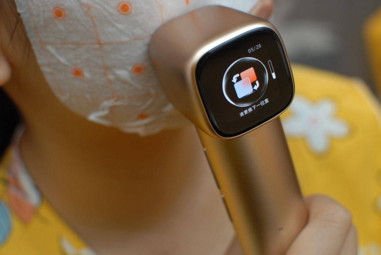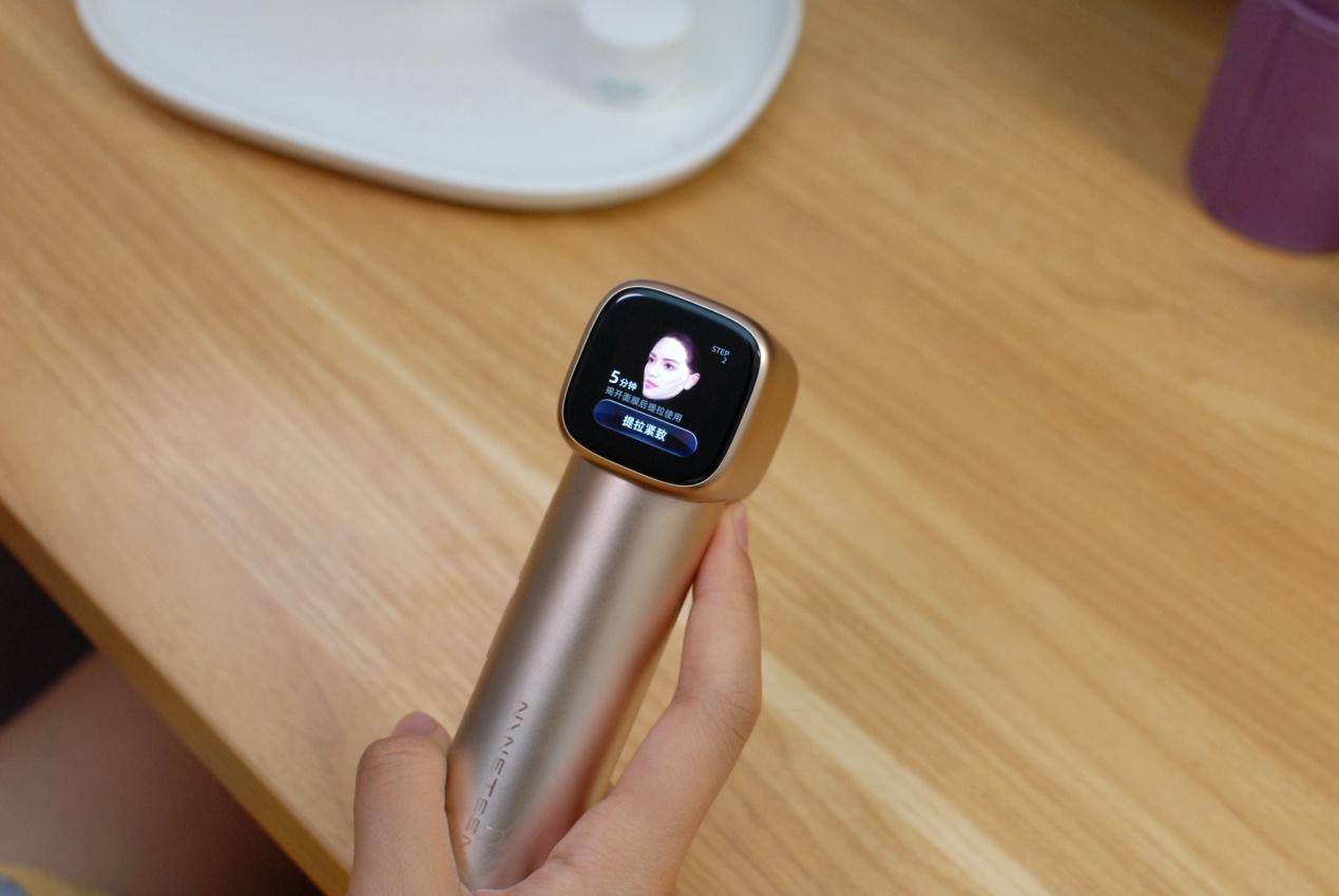 屏幕提供了模式选择、温度、进度等信息,加上智能音提示,实时引导护肤流程,护理难度基本为O,上手没有任何难度。