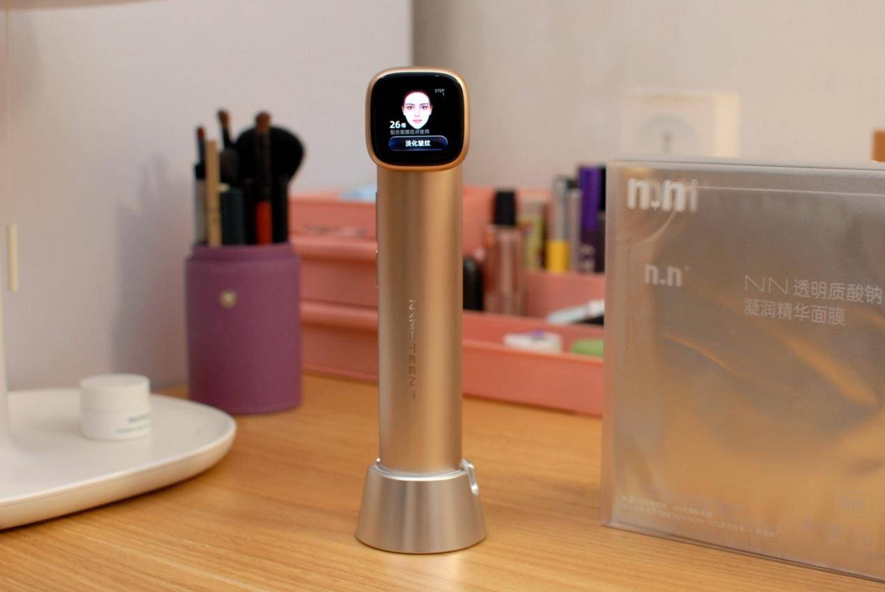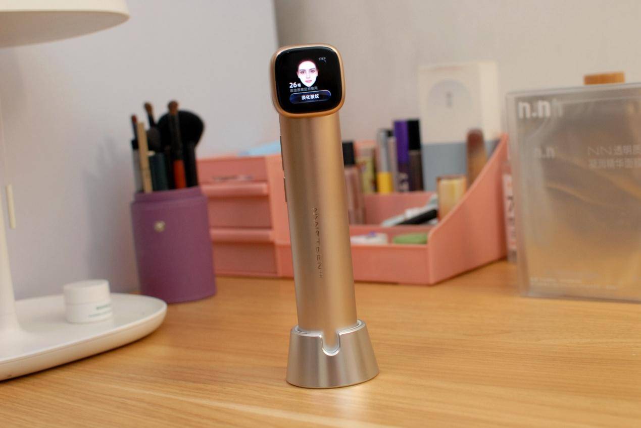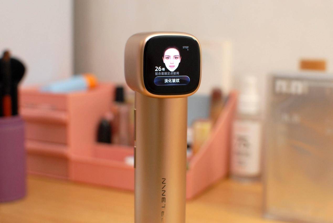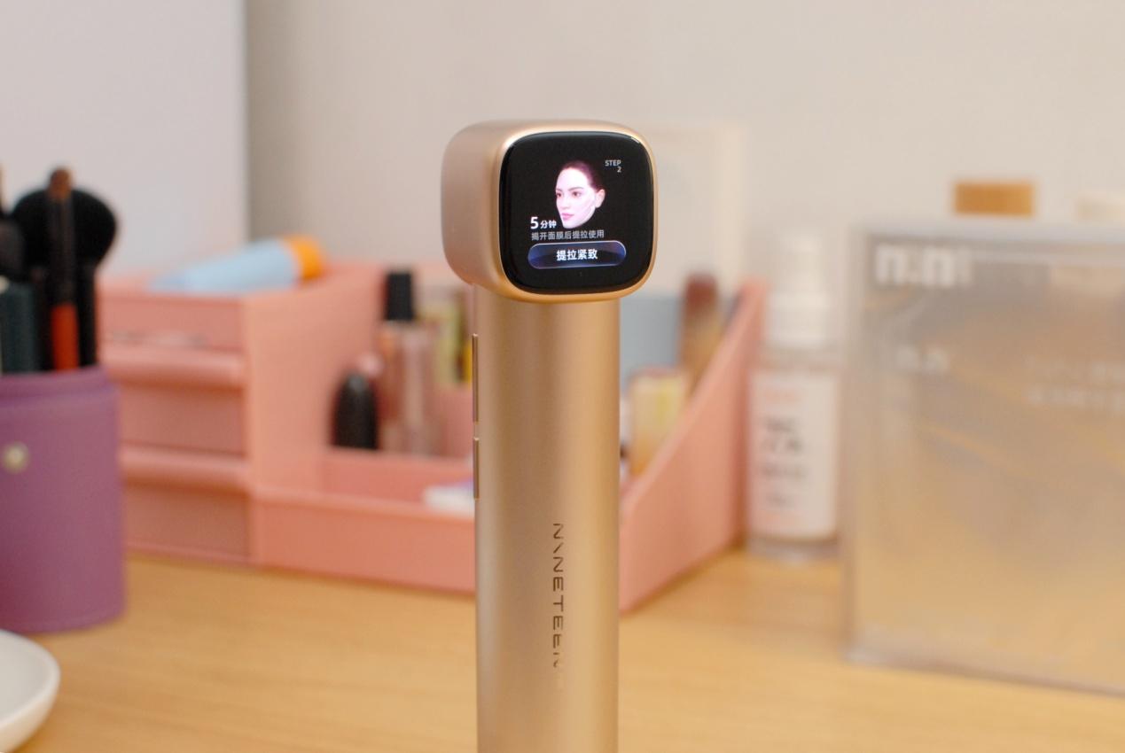 十九岁美容仪的一面搭载了一块1.33英寸的AMOLED触摸屏幕,显示细腻清晰整体效果不错。