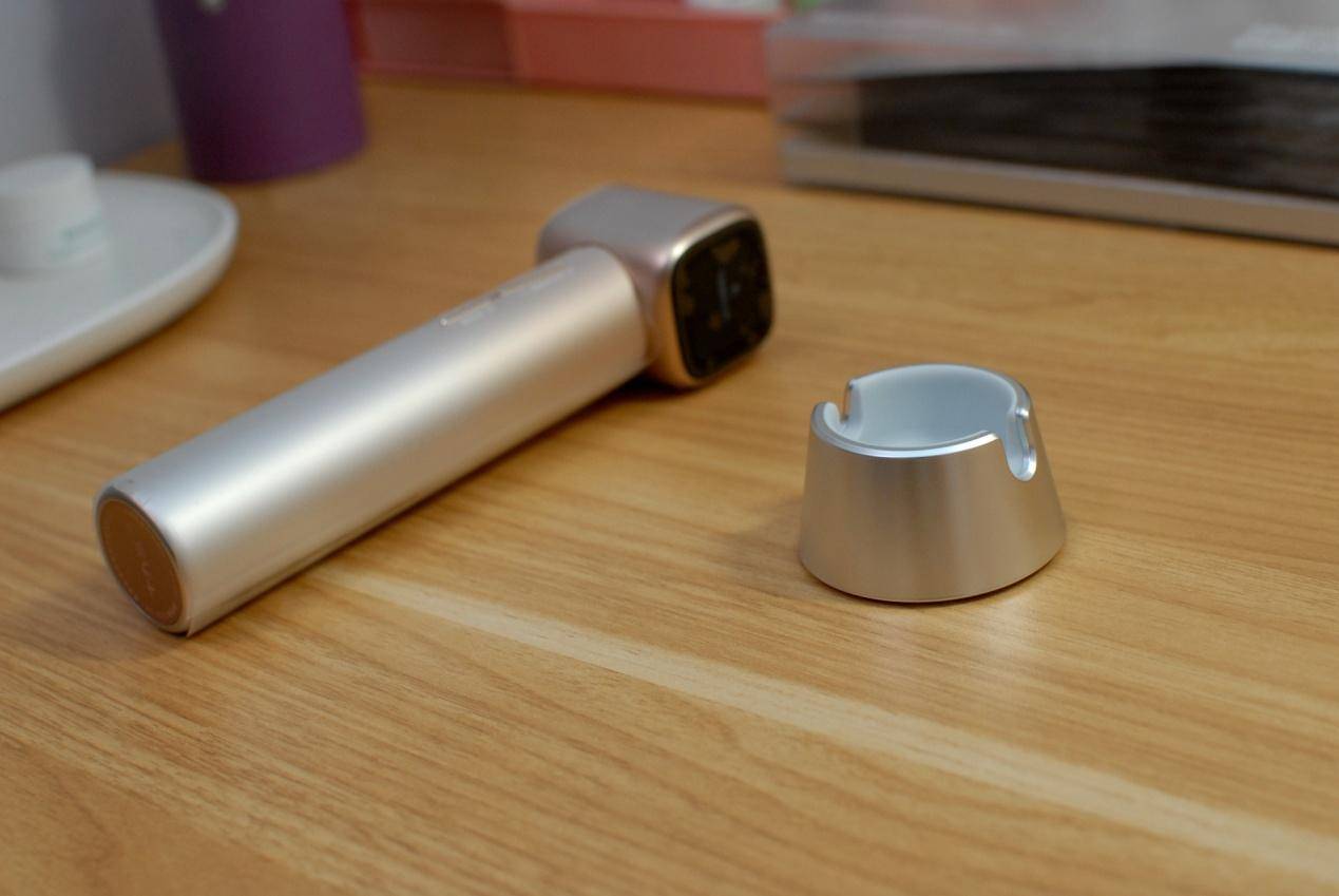 磁吸的底座其底部为吸盘式设计,是常使用完后可以让美容仪可以放置得更稳固一些,细节考虑得相当周到,有木有?