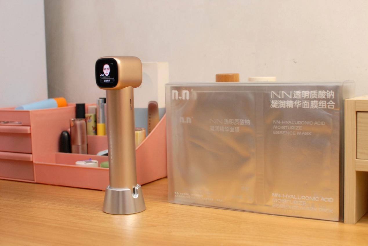 第二种是提拉紧致,揭开面膜后提拉使用,也可以配合NN透明质酸钠凝润精华液使用,主要作用是促进吸收,增加皮肤水分含量及时V脸去水肿,从而提高肤肤紧致度,至于这两种模式的具体使用方法和效果,稍后在我们在体验部分再和大家一一展示。