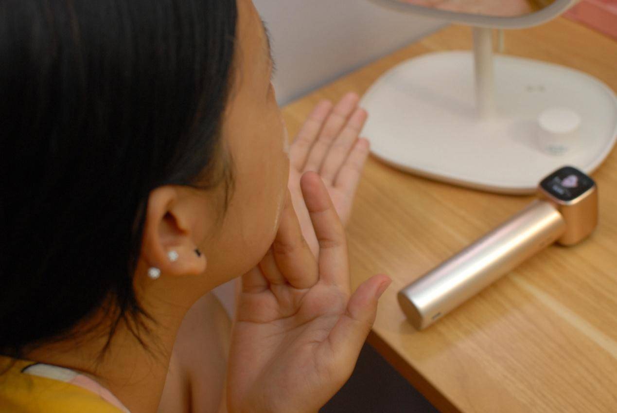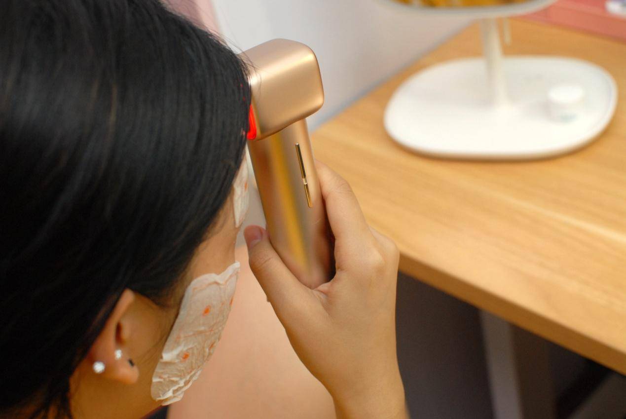 美容仪将以40°C的温度以及红光工作约十几秒左右,其间先预热表皮,然后对肌肤进行焕活胶原。