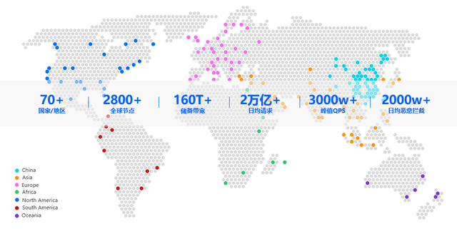 其次,在这些节点上,腾讯云把加速、安全能力都下沉到了边缘,累积能够为全球玩家提供160T的储备带宽,满足2W亿次的日均请求、3000W的峰值QPS、每天能够拦截2000多W次的恶意请求,可以说任意一款游戏,玩家都能在这个网络上感受到最极致的性能。