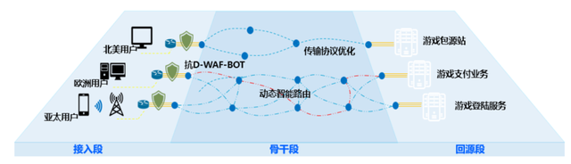 腾讯通过“端到端”的全链路安全加速架构,实现了接入段的就近入云、骨干段的全面防护和多维加速,以及回源段的智能调度,通过全路径的优化,为全球玩家提供安全、快速、稳定的游戏体验。