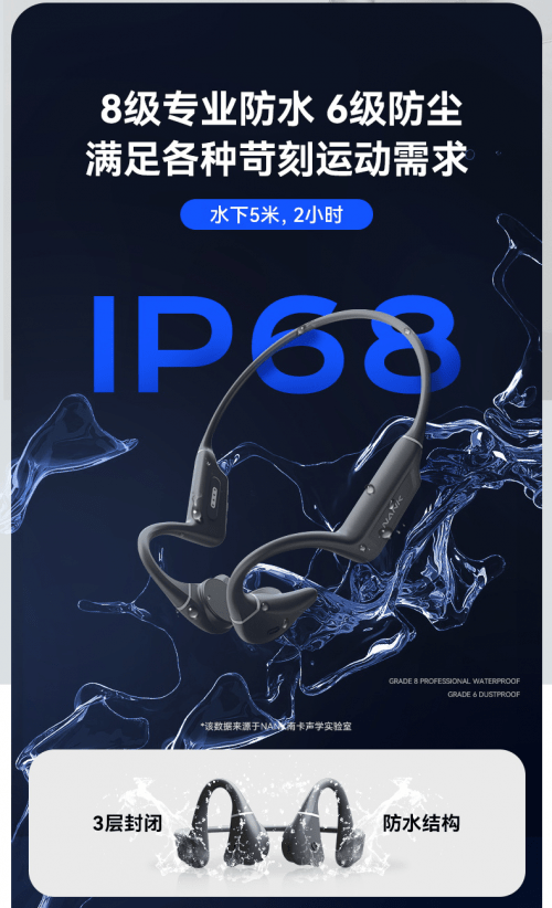 同时还具有出色的防水性能,采用了8级专业防水技术,高分子新防水材料和硅胶一体的密封工艺,形成防水屏障,极大提高防水等级。它的防水等级较高,这意味着它能够在各种运动场景中抵御汗水和雨水的侵蚀。无论是跑步、健身还是户外运动,即使在恶劣的天气条件下,你都可以放心地使用这款耳机。南卡Pro4S耳机的防水性能出色,让你在运动中随心畅享音乐的同时,无需担心水液对耳机的影响,是为数不多的高质量防水运动耳机品牌。