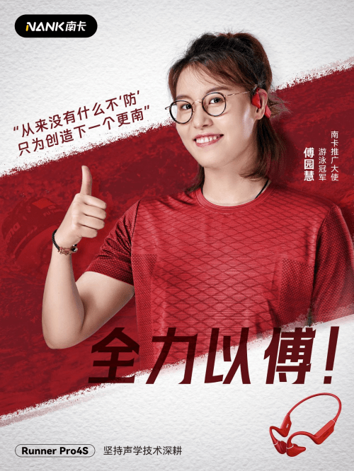 因契合而并肩,无论是游泳冠军傅园慧所展现的不怕输、不放弃的精神,还是NANK南卡始终坚持以“探寻更健康的听音方式 ,革新人们的听音体验”为品牌使命的理念,二者完美契合。一方是傅园慧所代表的坚持到底的运动精神,一方是为坚持为用户提供的高品质骨传导耳机产品的NANK南卡,尽管处于不同领域,但二者都具备相同的坚持与专注精神,在努力追求卓越的道路上相互激励,傅园慧与NANK南卡品牌携手合作。