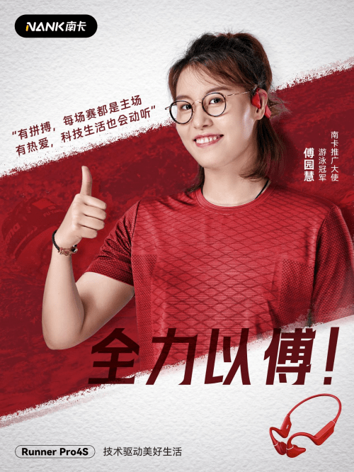 骨传导开放式耳机行业领导品牌Nank南卡今日宣布,将邀请世界游泳冠军傅园慧为品牌形象代言人,Nank南卡对品牌推广大使的选择并非跟随流量的潮向,而是甄选与自身价值观更为相符的游泳冠军。赛场上的傅园慧所体现的不怕输、不放弃,坚持到底的精神,她希望通过自己的行动激励所有人,鼓励他们遇到事情,都要全力以“傅”,坚持到底,这种态度和精神和Nank南卡10多年坚持声学技术深耕,致力于以技术驱动美好生活方式,探寻更健康的听音方式 ,革新人们的听音体验,让声音更好的方式融入运动、生活中品牌理念高度契合。