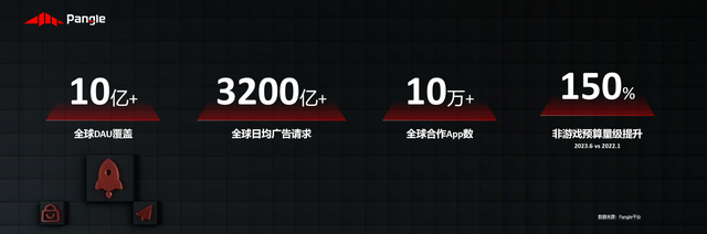 如今,TikTok for Business已成为全球广告主的必选营销渠道,作为TikTok for Business旗下的程序化移动广告平台,Pangle目前拥有超10万个优质App广告资源,全球日均广告请求量达3200亿,海外市场DAU覆盖超10亿。Pangle不仅在亚太、拉美、中东等增长迅速的新兴市场高速发展,还新增了加拿大、澳大利亚、新西兰等成熟英语市场,平台内多元、充沛的流量及预算为出海开发者提供了更好的变现和增长空间。