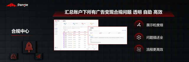 为更好地保障开发者变现安全,Pangle推出了「素材审核」和「Pangle合规中心」两大产品。