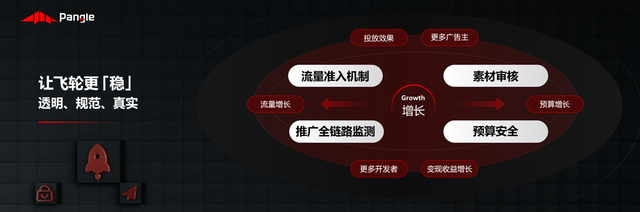 真实、安全、可靠的流量生态可让开发者在海外将生意做得更稳。Pangle致力于在流量质量和变现安全两个方面把好质量关,构建透明、真实、规范的出海生态,为全球开发者伙伴生意增长“保驾护航”。