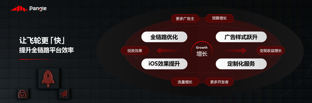 为帮助处于不同出海阶段、不同生意类型、不同生意目标的开发者完成从出海入局到进阶增长,Pangle通过模式创新、技术提效、生态护航三大维度,助力开发者不断提升买量及变现效率,获得稳定且高效的生意增长。