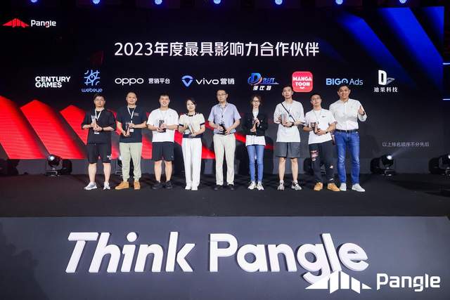 独木不成林,出海生态的构建离不开多方的共同努力。会上,Pangle重磅发布2023年度优秀合作伙伴大奖,围绕无限增长力、极致创新力、最具影响力、商业领创力四个方面,为表现突出的23家生态伙伴进行颁奖,树立行业标杆。