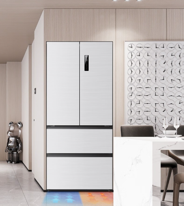 美菱大窄门系列冰箱通过全空间集成技术,把超薄嵌入式冰箱的结构进行了再一次的升级,实现了单侧预留<1cm,背部0距离贴墙、创新底部散热前进前出的设计和90°直角开门,极大程度的利用了的冰箱的每一寸所占空间。