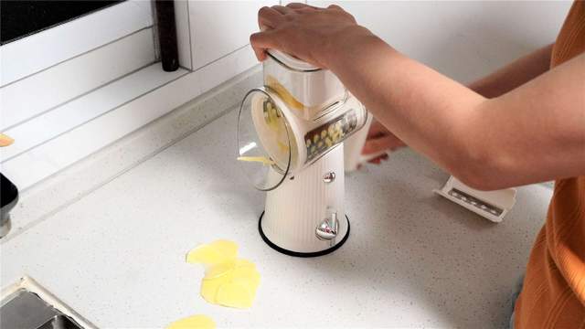 而且值得注意的是,以这样的一个切片刀片为例,我们在切菜的过程中,按压力度越大则切菜的厚度越厚,所以我们完全可以根据自己的力量来控制实际食材的加工形态,如此一来,不到百元的价格就能轻松实现厨房的切菜自由。