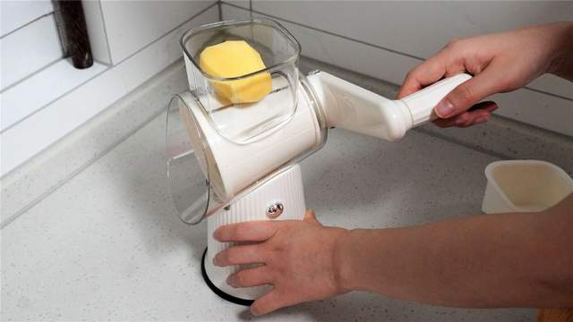 也会有小伙伴担心投料口的大小问题,其实厂家也是充分考虑到了,所以将入料桶设计成了93×100mm的大口径,支持多类食材的整个放,尤其像我们切土豆啥的直接削了皮之后丢进去就行了,根本无需频繁改刀就能够直接切丝切片,非常方便。