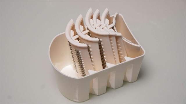 这方面厂家在各种刀具的收纳方面给我们准备了一个五合一的刀具收纳盒,可以防止出厂刀具的遗失,而且它还有个透明的投料口,能够让我们看到切菜的进度。最后就是插销式的刀筒能够保证按压方便,而且拆卸也方便。