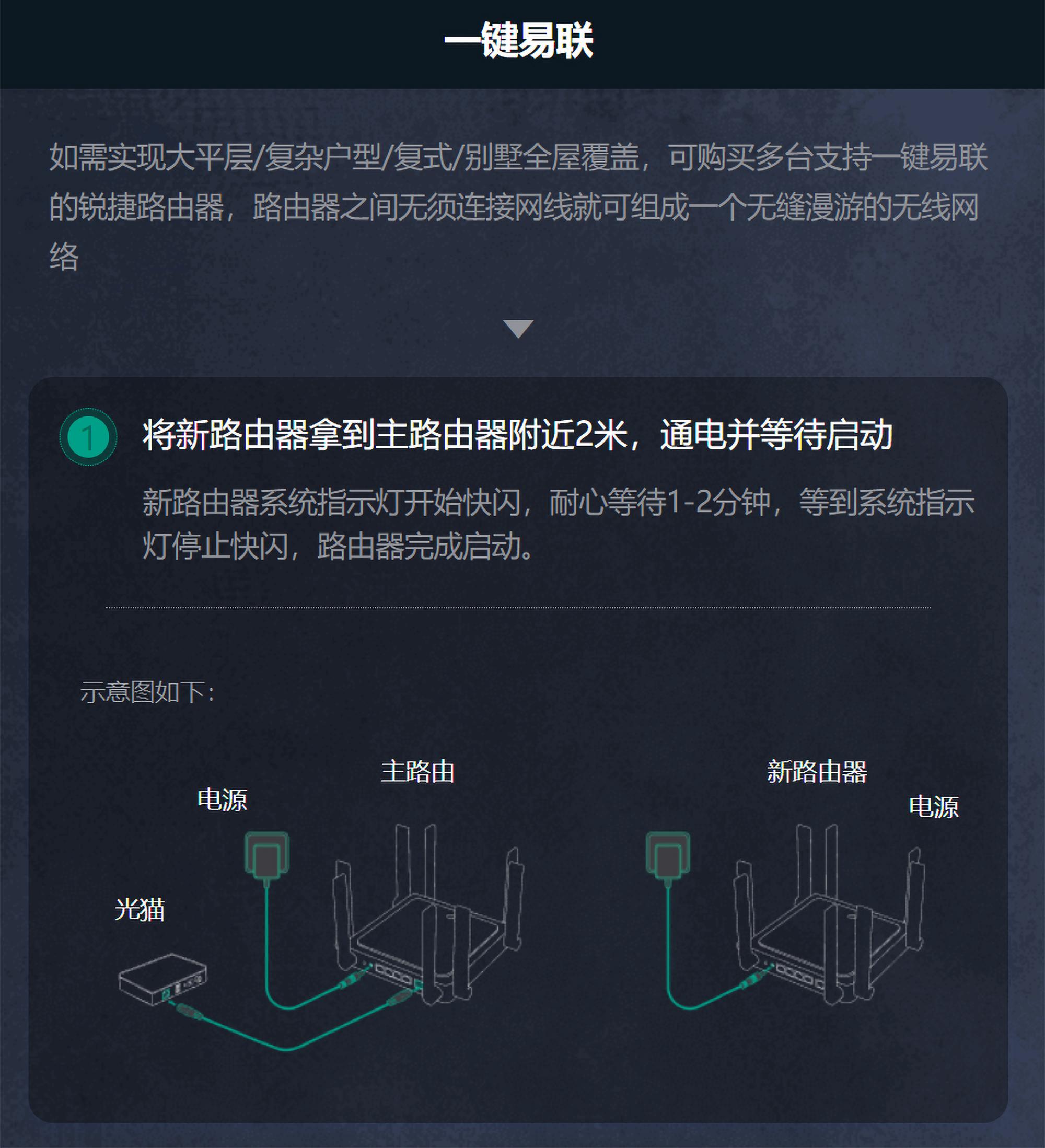 既然是新品,该有的能力不能少,锐捷天蝎也支持MESH组网功能,这还不重要,重要的是可以支持无线MESH、有线MESH以及混合MESH,这样的话就可以适用于更多的使用环境。不管是多大的空间使用,都能够解决网络死角的问题。
