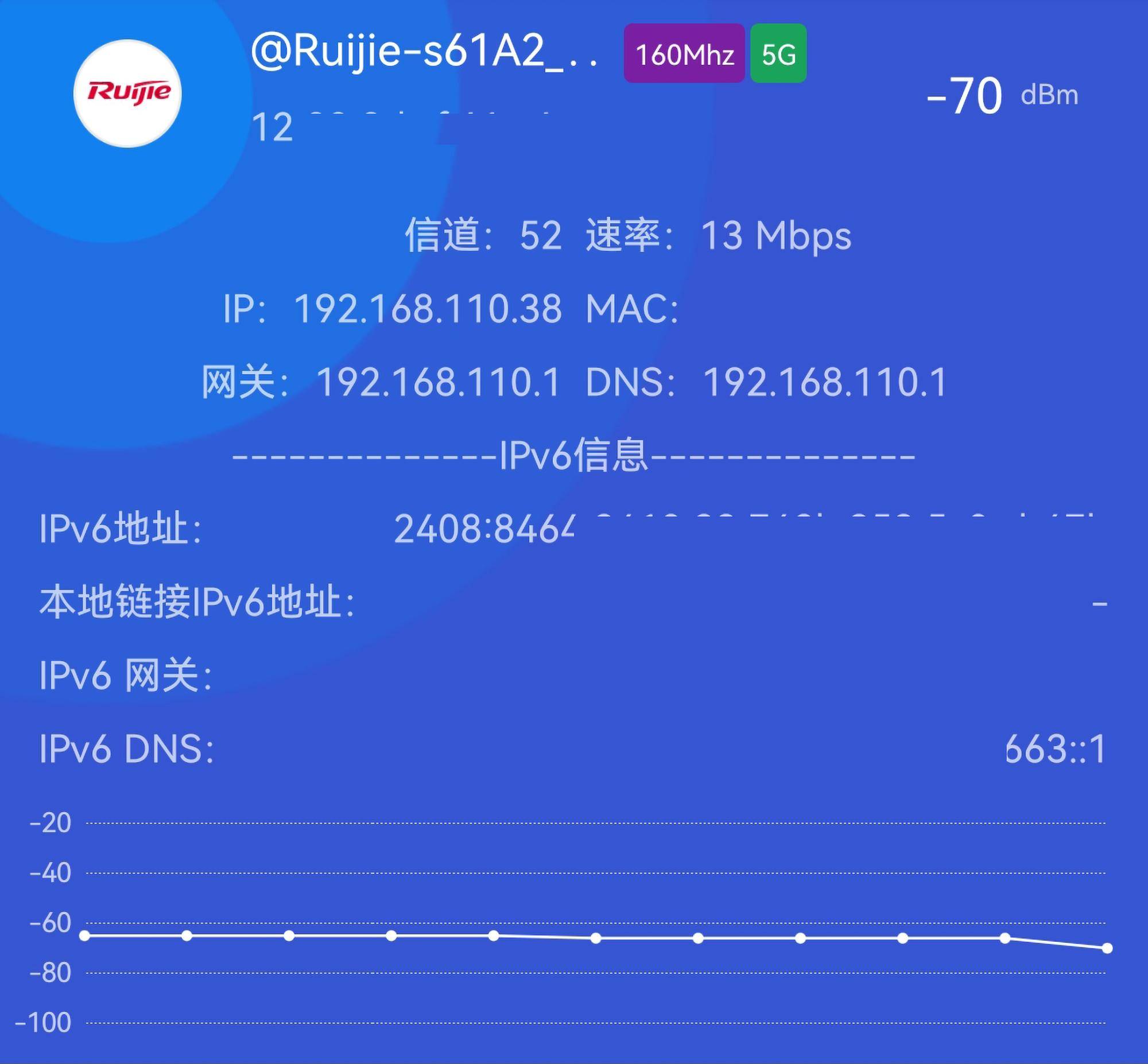 前文提到过,锐捷天蝎采用的8根双振子天线+8颗FEM独立信号放大器,这还不算完,锐捷天蝎还支持160MHz的超大频宽,想当年能够测这个功能的只有华为P40PRO,现在在这个价位的锐捷天蝎也能体验到大频宽带来的超快体验感了。