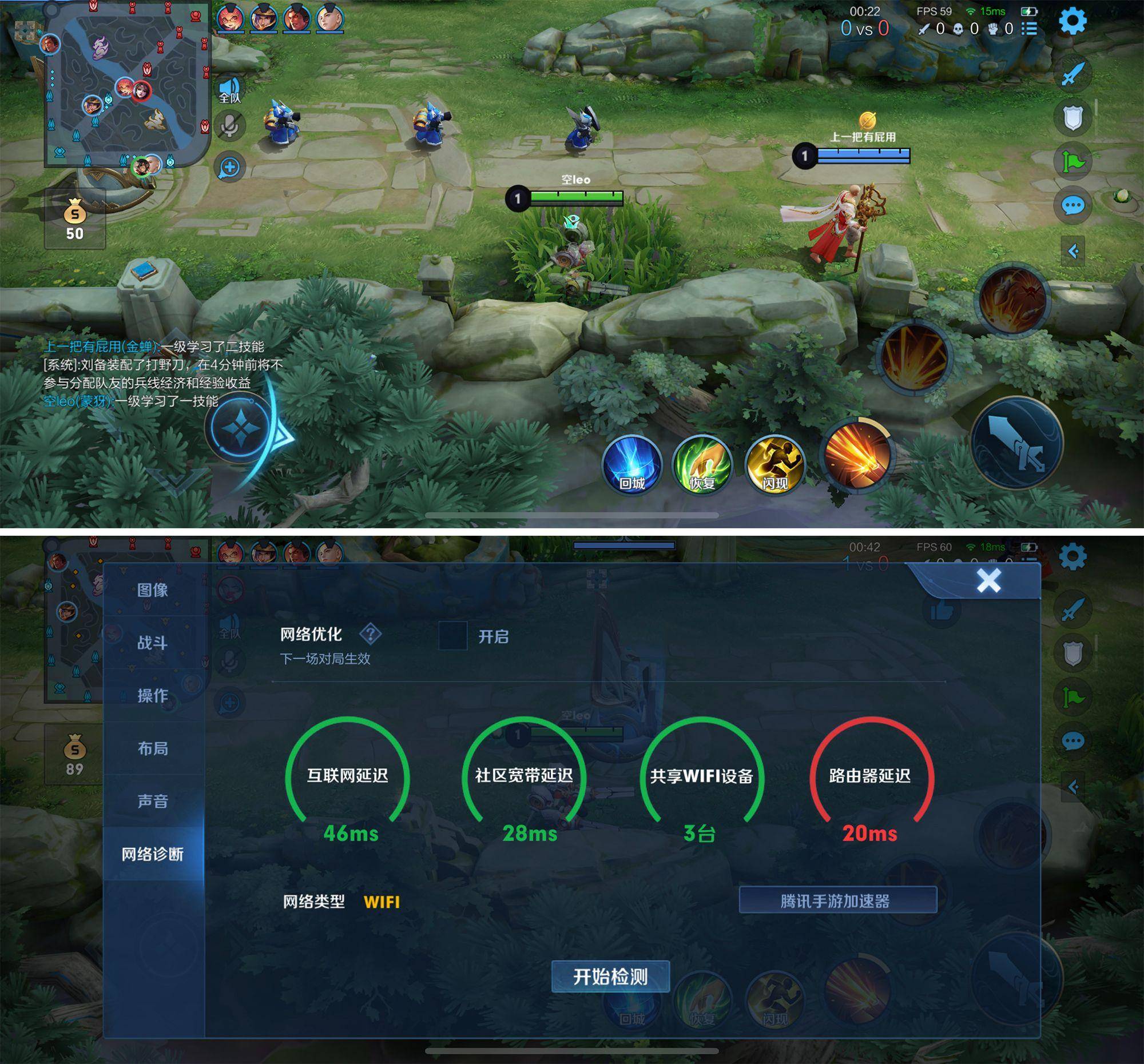 处于加速状态下的游戏设备表现确实比常规的方式延迟小,日常我用的某米9k的路由器,延迟大约在30-40ms左右,而在锐捷天蝎的游戏加速加持下,王者的延迟基本维持在20ms内,全程没有卡顿。注意哦,这个游戏加速是自动识别的。