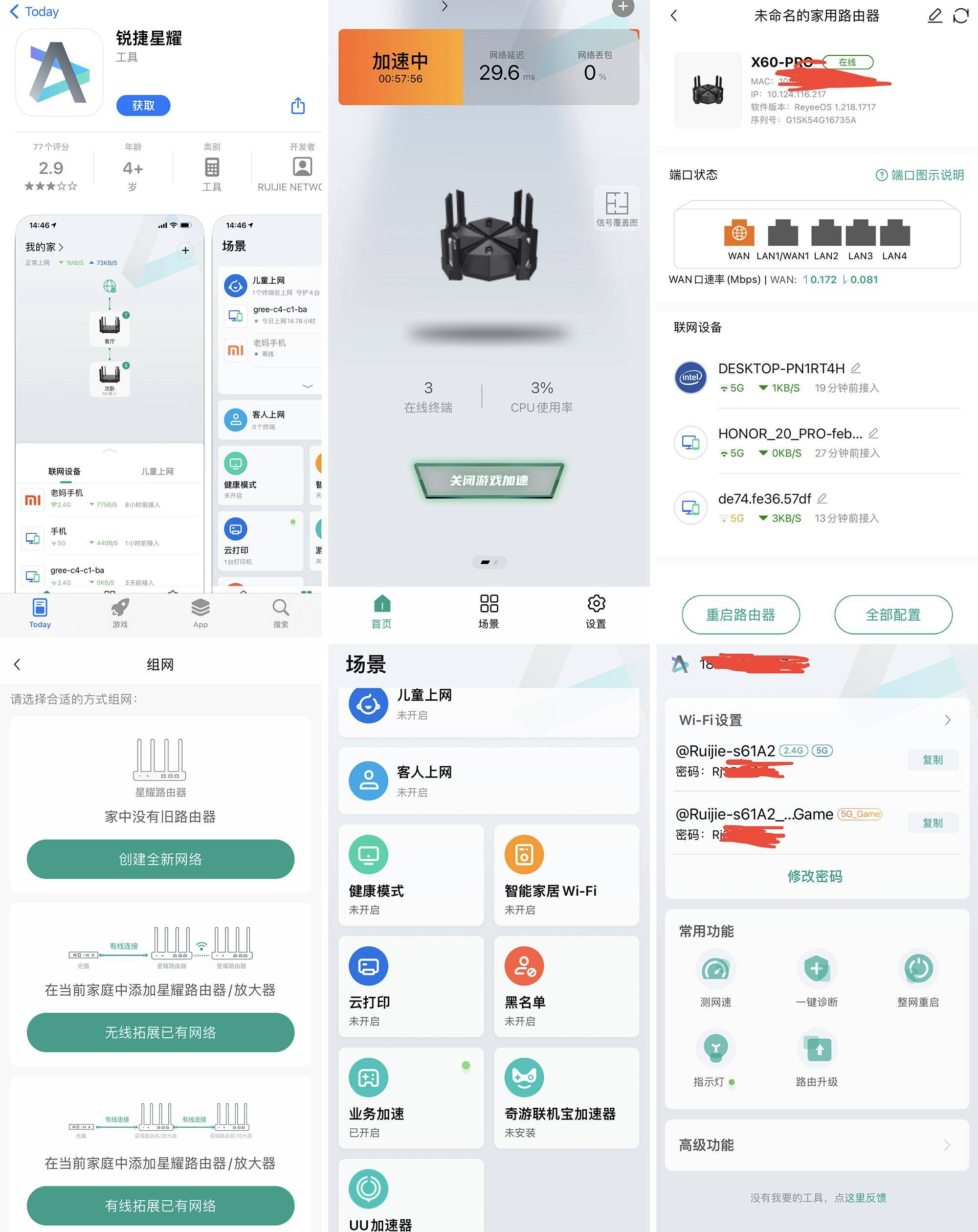 值得一提的是,锐捷旗下的路由器都有单独的手机app,可以远程管理、配置,为这款路由器的使用又提供了一定的便利性,当然了前面提到的MESH组网功能也可以通过这个app进行配置。