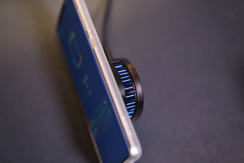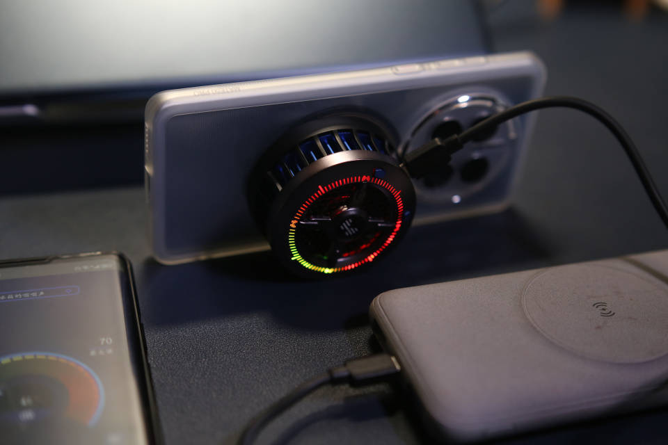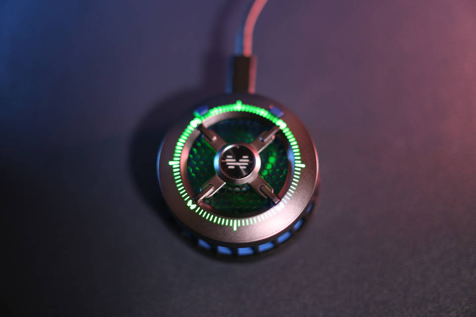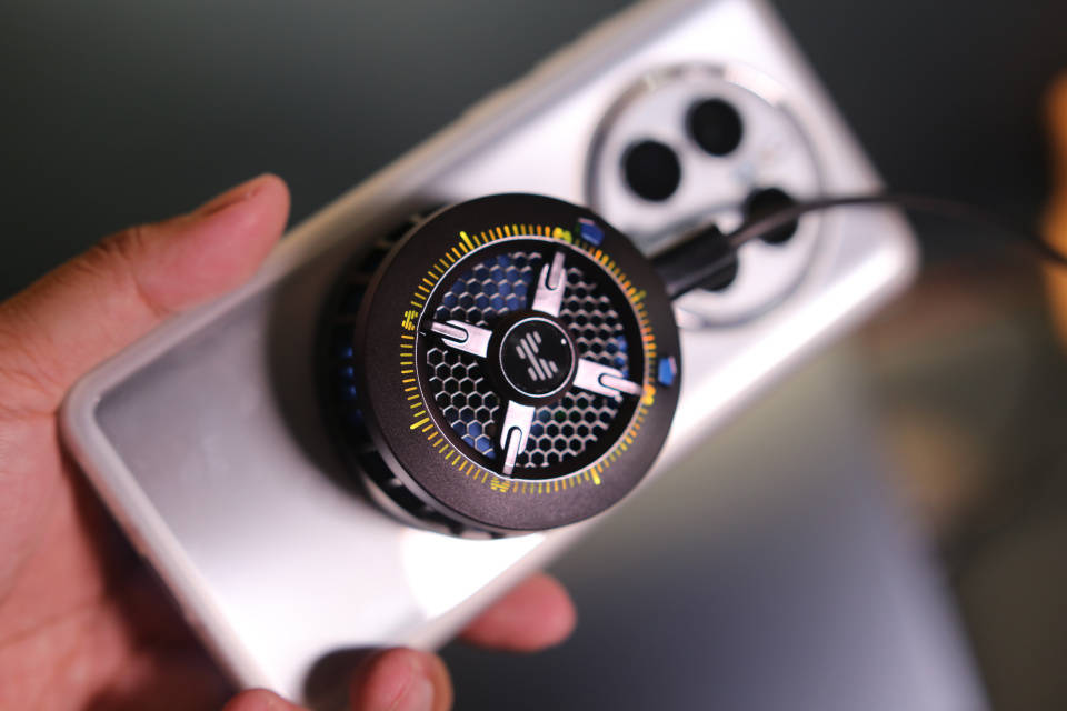 那个圆形的设备就是北通ICE手机散热器采用半导体制冷技术,制冷器面积40*40mm(开启散热器后可以观察圆形硅胶中间的方形),并搭载6000转的高速风扇,不只是能给手机快速降温,还能在急速模式保持按键,在开启音响情况下,几乎无法听到风扇声音。
