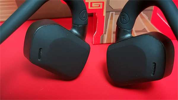 将耳机转向内侧观察,这里就可以看到追光鸟(传风PB330)与骨传导耳机的区别了。通过观察,可以看到左右两侧面向耳孔的方向各自开设两个音频传输口,在耳机运行时,16mm动圈单元能为用户提供强劲的中低音效,耳机内部独特的导音管系统,通过定向传导方式将声音传至用户两侧的耳朵之中。
