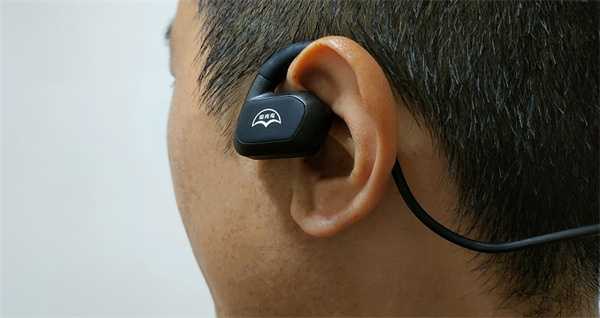 通过将耳机进行单独陈列展示,可以看到耳机整体框架与骨传导一样,都是采用一体化成型的龙骨设计,特制的半记忆金属材质,柔韧性极佳,可实现任意角度的扭曲折叠,适中的夹合力道能够轻松适配不同头型的人群佩戴,紧贴耳部的设计,很好避免运动中可能出现的耳机松脱情况。