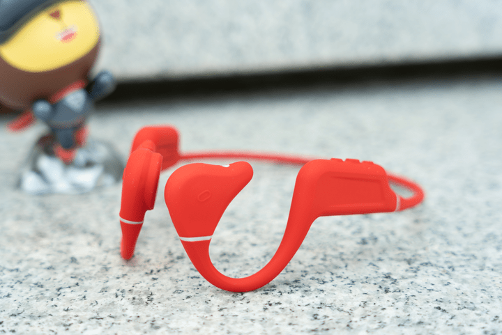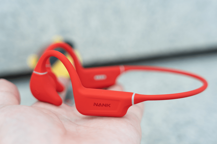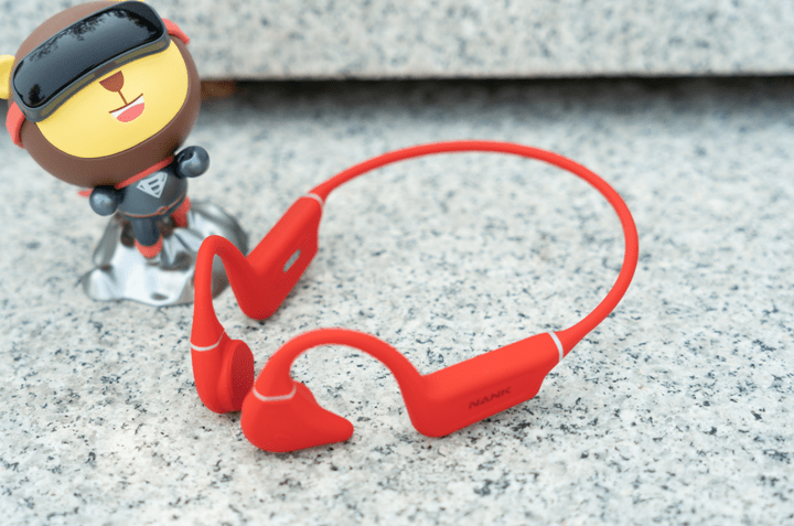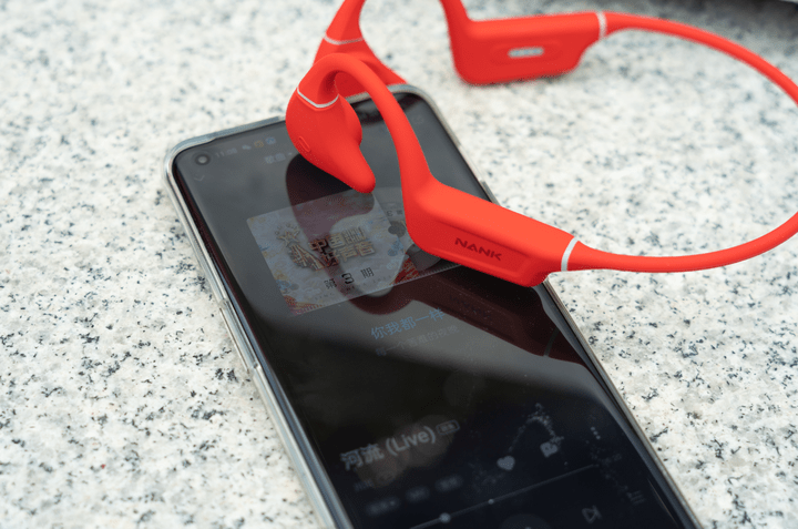 耳机的机身上还有南卡的LOGO,搭配大气、时尚的红色设计,整体颜值在骨传导耳机中可圈可点,气质上拿捏的稳稳的。其次耳机还加入了8级防水,正如我前面提到了戴上Runner Pro4S甚至可以游泳,真的十分便利。