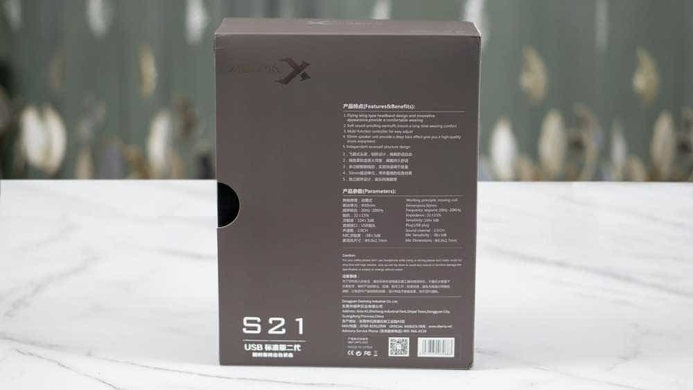 背面是通体的浅棕色,并描述了西伯利亚S21的五个特征,分别是飞翼式头梁、皮质耳套、多功能线控、50mm的驱动单元和独立的腔体设计。还有产品的主要参数,如动圈式发音单元,直径50mm复合材质振膜等,也让我对它的音质充满了期待。