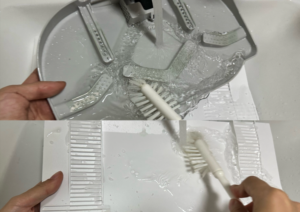 另外,清洁盘上的小点点大家有没有感到眼熟?是不是洗衣机里也有类似的小点点?没错!这就是仿照洗衣机的方式在清洗拖布,高低不同的凸点配合着慢速预洗>中速漂洗>高速甩干,三部曲的方式使拖布更加干净!并且,在洗拖布时还可以调节水温,高温清洗、热风烘干一整套流程下来,即使是再潮湿的环境也不用担心拖布发臭了。像我这种有小朋友的家庭,这种清洗模式让我使用的时候更加安心。