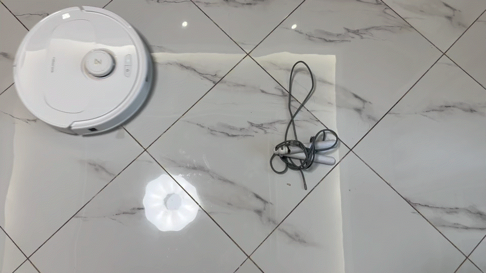 日常最为担心的便是机器人被各种线路所缠绕,不仅会导致机器人被困影响后续的清洁工作,有时候线还会坏,影响使用。然而用跳绳测试的时候,很明显机器人成功躲避。