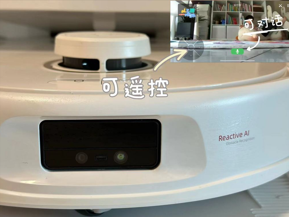 另外,它的“眼睛”不仅可以用来避障,还可以用它进行实时视频通话。可以查看孩子在家的情况,还可以用来查看宠物是否又在拆家。