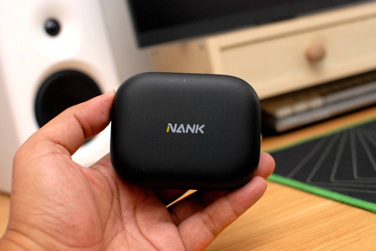 南卡OE CC的充电盒上手展示,可以看出并不是很迷你,但是非常的轻,查了一下相关资料,充电盒带耳机整机重量也就104g,携带没什么压力。