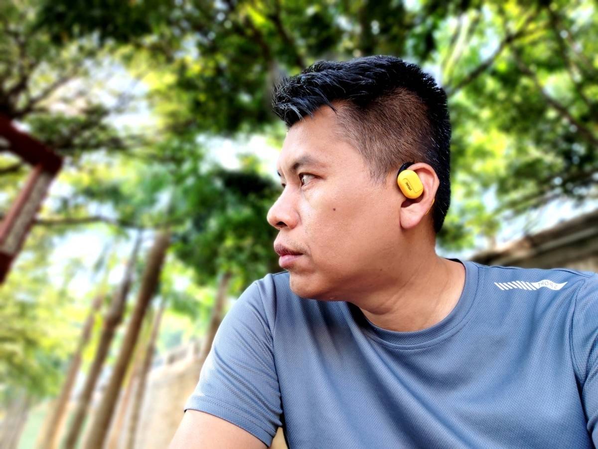 体验部分,我们先说来说说佩戴的情况,单个约10克的重量,几乎可以忽略了耳机的存在感,挂耳的设计在运动中稳固性表现不错,触摸式的操控使用并不复杂,但需要有一个熟悉的过程。