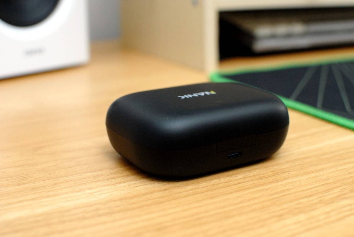 背面是充电接口,充电盒内置了700mAh电池,满电的情况下可提供40小时左右的续航。