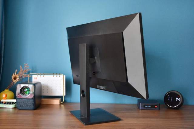 不管是正面,还是背面,联合创新27C1U-D都平整流畅,且它不仅可以调整上下高度,也能进行前后-5℃到+20℃俯仰调节,还能在不转动底座的前提下左右-45℃到+45℃旋转调节。这多角度调整不仅能够在使用时更灵活、更自由,也方便用户契合到最舒适的坐姿和观看效果,让我这种长时间工作对着显示屏的人非常满意。