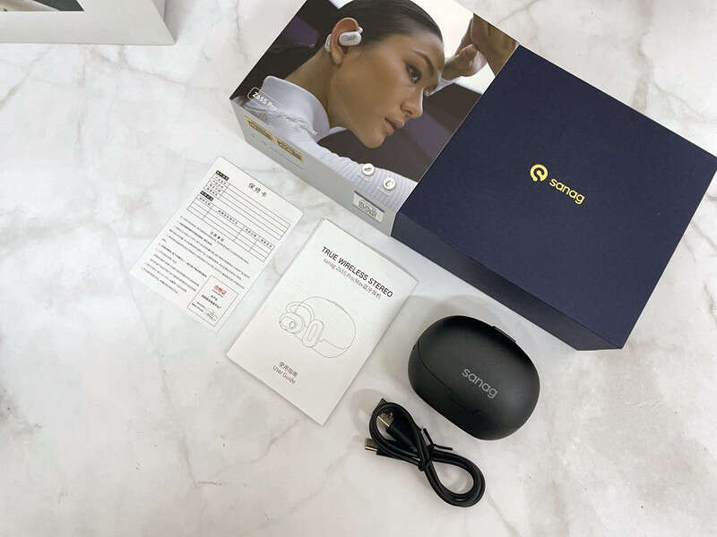 机身部分采用了90°悬空定位耳挂结构,内部采用了塞那独有的脉冲DT5.0 定向传音技术,确保声音通过声学透镜将分散的信号聚集成束,确保声音高效传入耳道,有效防止漏音。充电时间大约1.5-2小时,正常使用单次续航15小时、通话12小时能满足一天的重度使用需求。