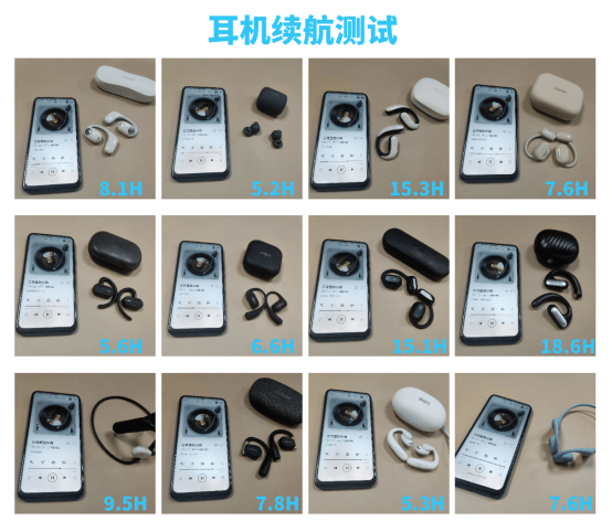 经过测试,下面就把每一个款式的实际续航时间写在下图,这些就是耳机的实际续航时间。