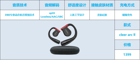 Cleer这款耳机有运动、游戏和音乐三个版本,使用场景区分很明确。耳机外观较为科技,佩戴比较稳固。但是舒适性不是它的强项,耳机轮廓分明,长时间佩戴会产生一定的疼痛感。如果追求舒适性,Cleer可能不是很好的选择。